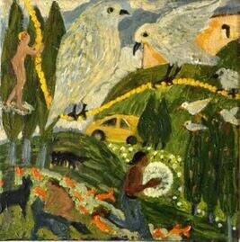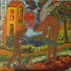 Grethe Tranberg painting imaginative pictures of animals and humans in a interaction that is both dramatic and expressive, but also in the balance. Here appearing Angels with naturalness in archetypal modes in a modern colorfull language. She is inspired by medieval imagery and Tuscany's mythological creatures with and without wings in a fertile hilly landscape. Together with the naïve expression and a strong expressive style is Grethe the big storyteller in her paintings. Here's what Grethe even slices of her painting: "I'm working on that color must live, be deep, textuality, vibrating and organic, the form supports the color: the color becomes form, it will be moving and provide motive and history.