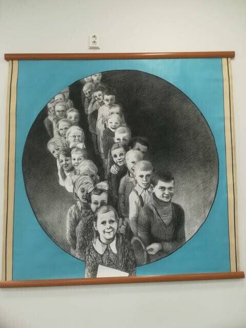 ” Kukin vuorollaan / Each in turn ” a series of ” Elämää varten / For the life", 2018,technic charcoal-acryl, Ii, Hamina school