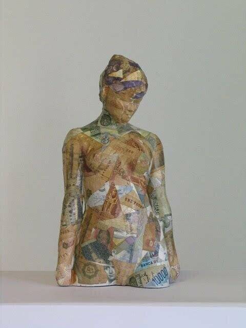” Raha morsian sarjasta Myydyt morsiamet / The Monetary bride from series Sold brides”, 2018, plaster and paper money